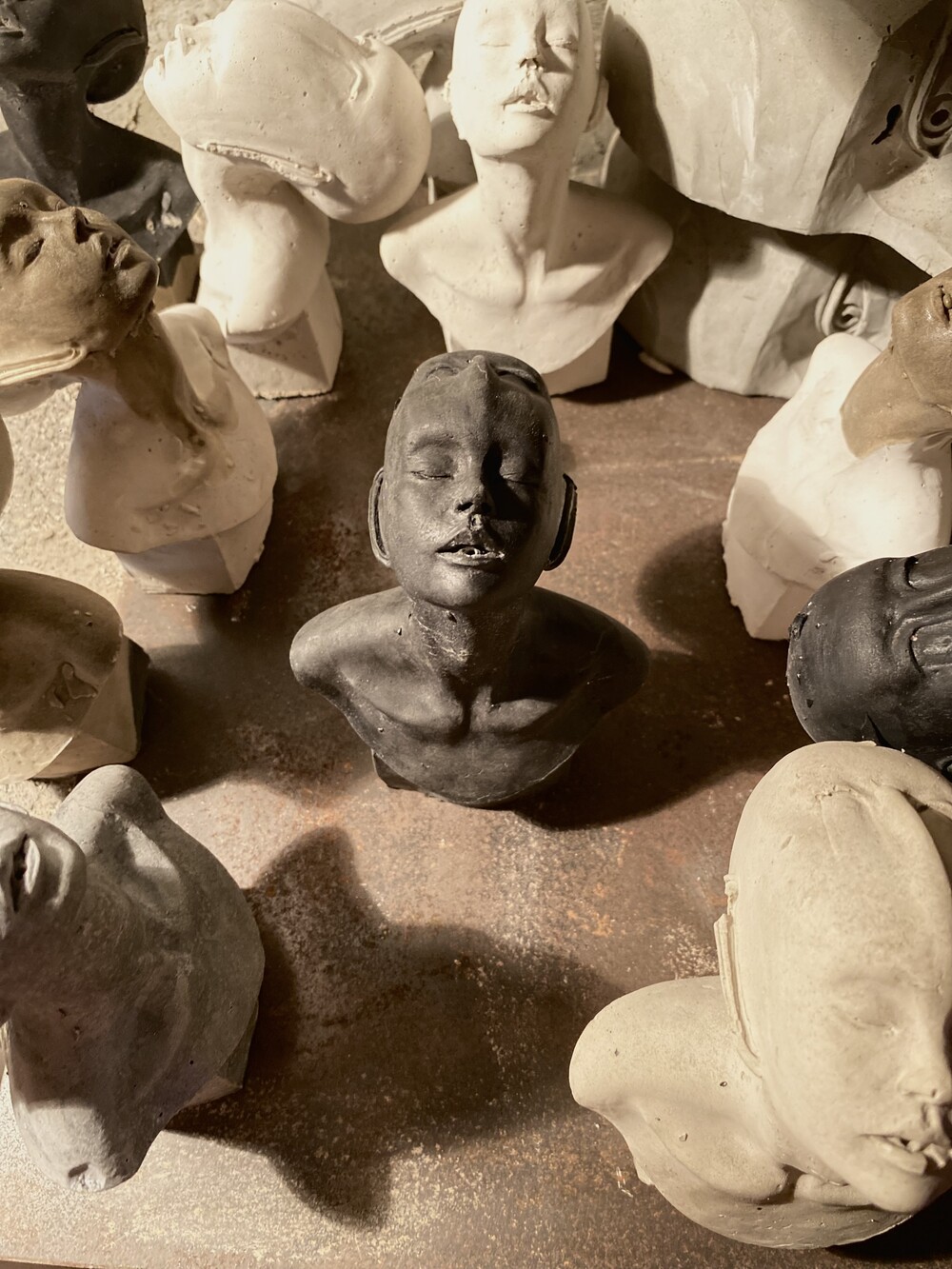 각 작품은 동일한 몰드에서 시작되지만 시멘트의 색감, 섞임 정도, 작가의 손길에 따라모두 다른 무드와 섞임을 품습니다.